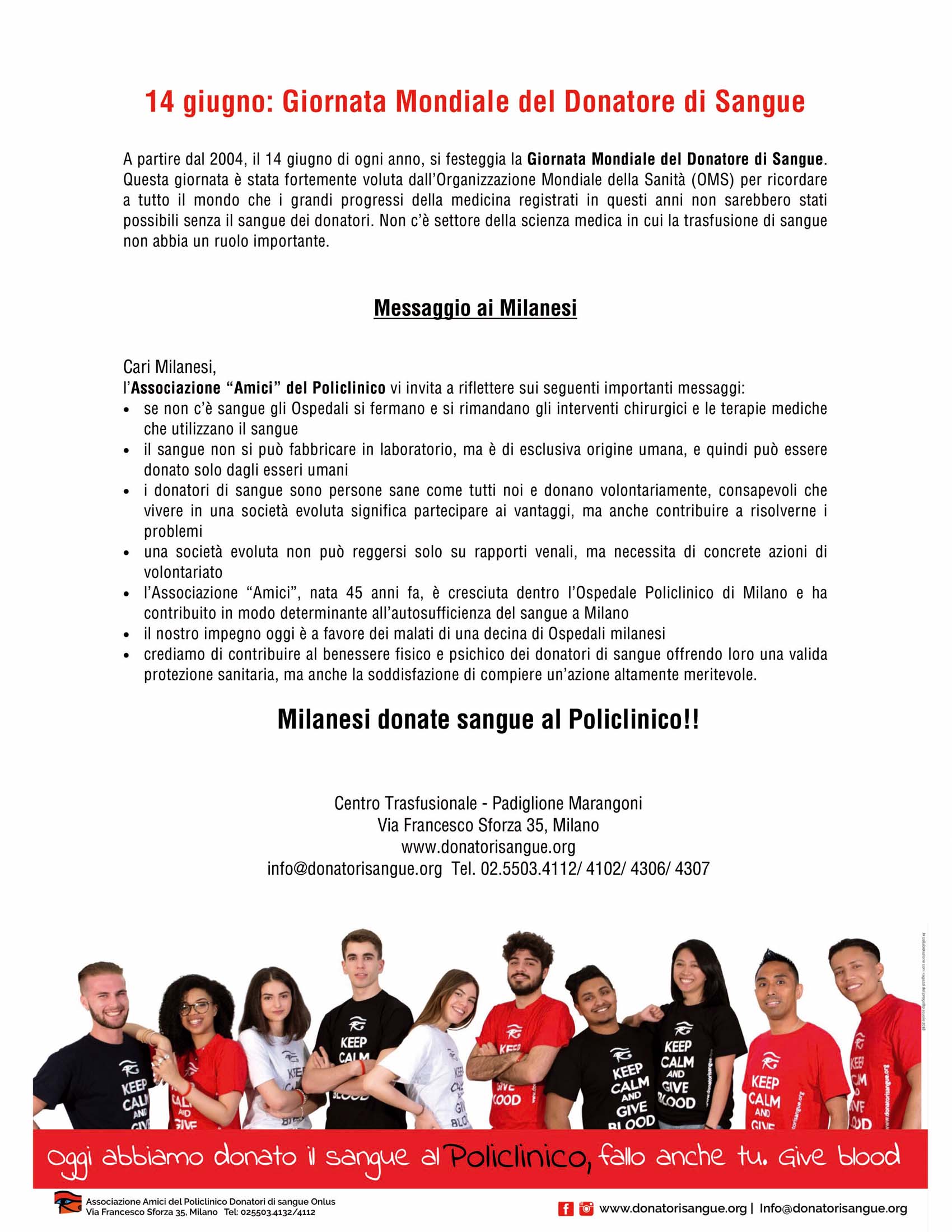 Per quasi mezzo secolo ho organizzato e gestito un’associazione di donatori di sangue presso il Centro Trasfusionale del Policlinico di Milano e credo di aver imparato molto da questa esperienza. Ho capito innanzitutto che la donazione di sangue deve essere considerata un atto medico oltre che sociale, perché deve consentire un controllo delle condizioni di salute del donatore e rappresentare per lui un momento di incontro con un medico che possa suggerirgli alcune azioni utili alla sua salute e a prevenire possibili danni che si profilano all’orizzonte; controlli della salute che oltre tutto contribuiscono a fidelizzare molte persone al Centro Trasfusionale.
